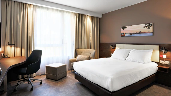 Cette grande chambre spacieuse et moderne est idéale pour une nuit calme près de l’aéroport Toulouse-Blagnac. Équipée d’un grand lit double haut de gamme, d’une connexion Wi-Fi haut débit gratuite et d’une TV écran plat, elle garantit un séjour confortable et pratique. Vous y trouverez également une machine à café ainsi qu’un mini-réfrigérateur, pour encore plus de confort et d’autonomie.